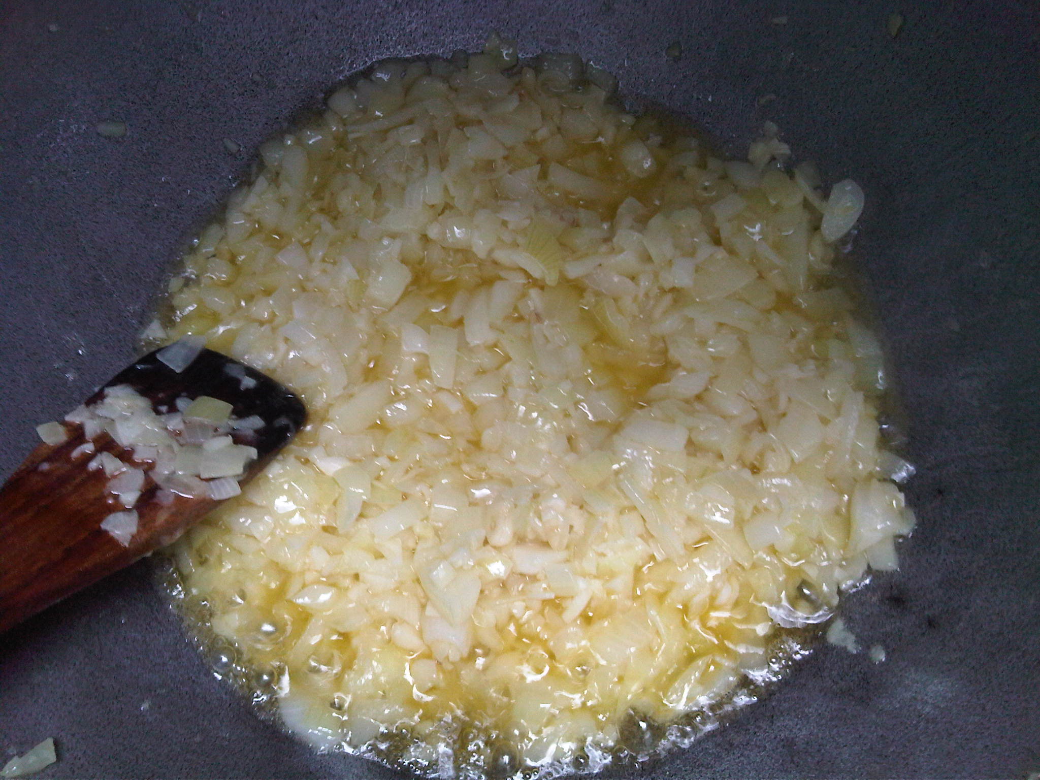 - Saute the onions and garlic with the olive oil until the caramelized.