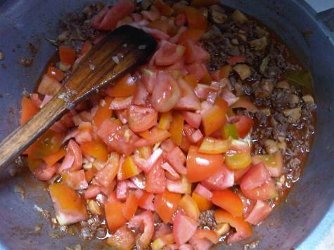 - Add the fresh tomatoes, stir all of the ingredients until it boils.
