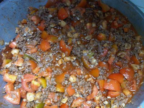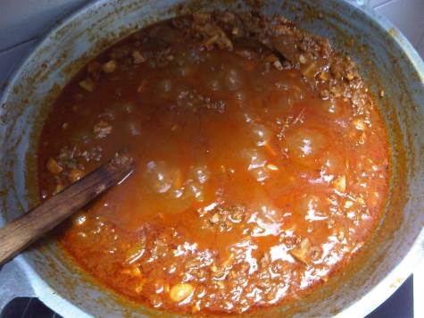 - Turn the heat down, let it sit with gradually stirring it until all the tomatoes soft and the liquid has thicken into a nice saucy meat.