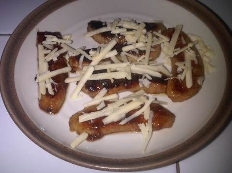 - when they’re all brown and lovely, put them on plate and serve. I add grated cheese on top, or even use them as a pancake topping.