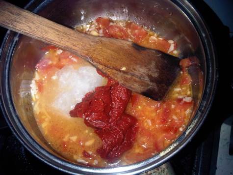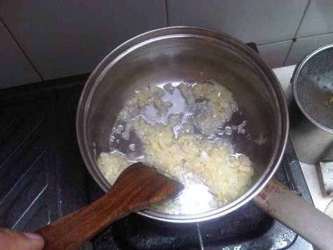 - turn the stove to medium heat, add 2 tbsp of olive oil and cook the onions and garlic until soft.