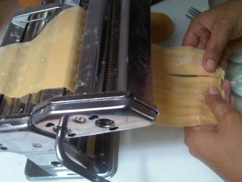 - cut the dough in four equal sizes, shape into balls. Roll each pasta ball thinly using hand roller, or in my case is using my brand new pasta machine!