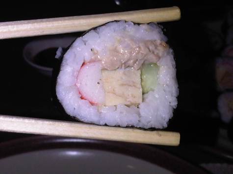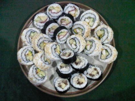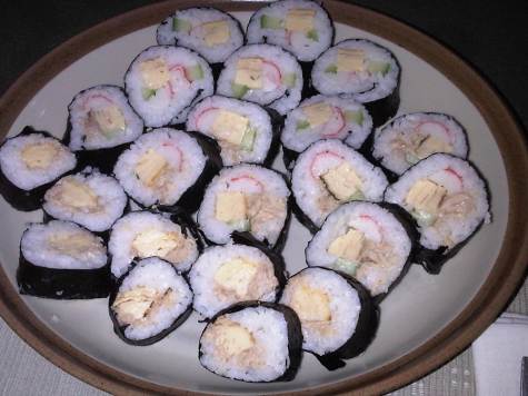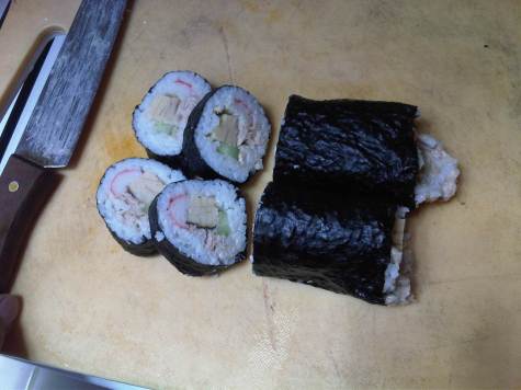- I made 3 kinds of sushi maki. Kani+cucumber+tamago roll, kani+cucumber+tamago+tuna mayo roll, and tamago+tuna mayo roll.
