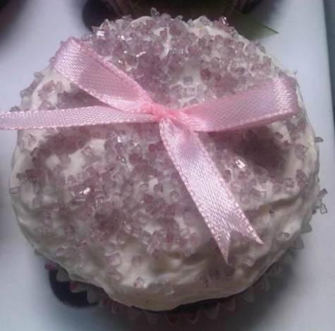 I decorated the cupcakes using colored crystal sugar, mini heart shapes decorating sugar, and small ribbons.