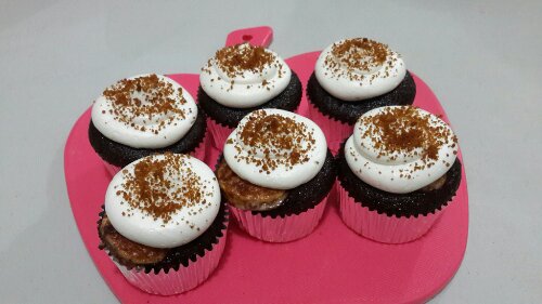 Now on this state, these cupcakes are already good to eat without frosting. If you want to add frosting, I recommend a simple tasting one, like vanilla butter cream. I add sprinkles of brown sugar on top of the frosting. Brown sugar tastes sooo good with chocolate.